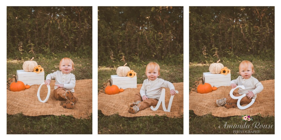 This little guy right here is the definition of absolute sweetness! Let’s talk about how happy he was and how he had the biggest open-mouth smile ever! So stinkin’ cute! He was loving the cool morning, watching the leaves fall from the trees, and playing on the blanket with his toys. Can’t believe you’ve been halfway around the Sun already Colton!